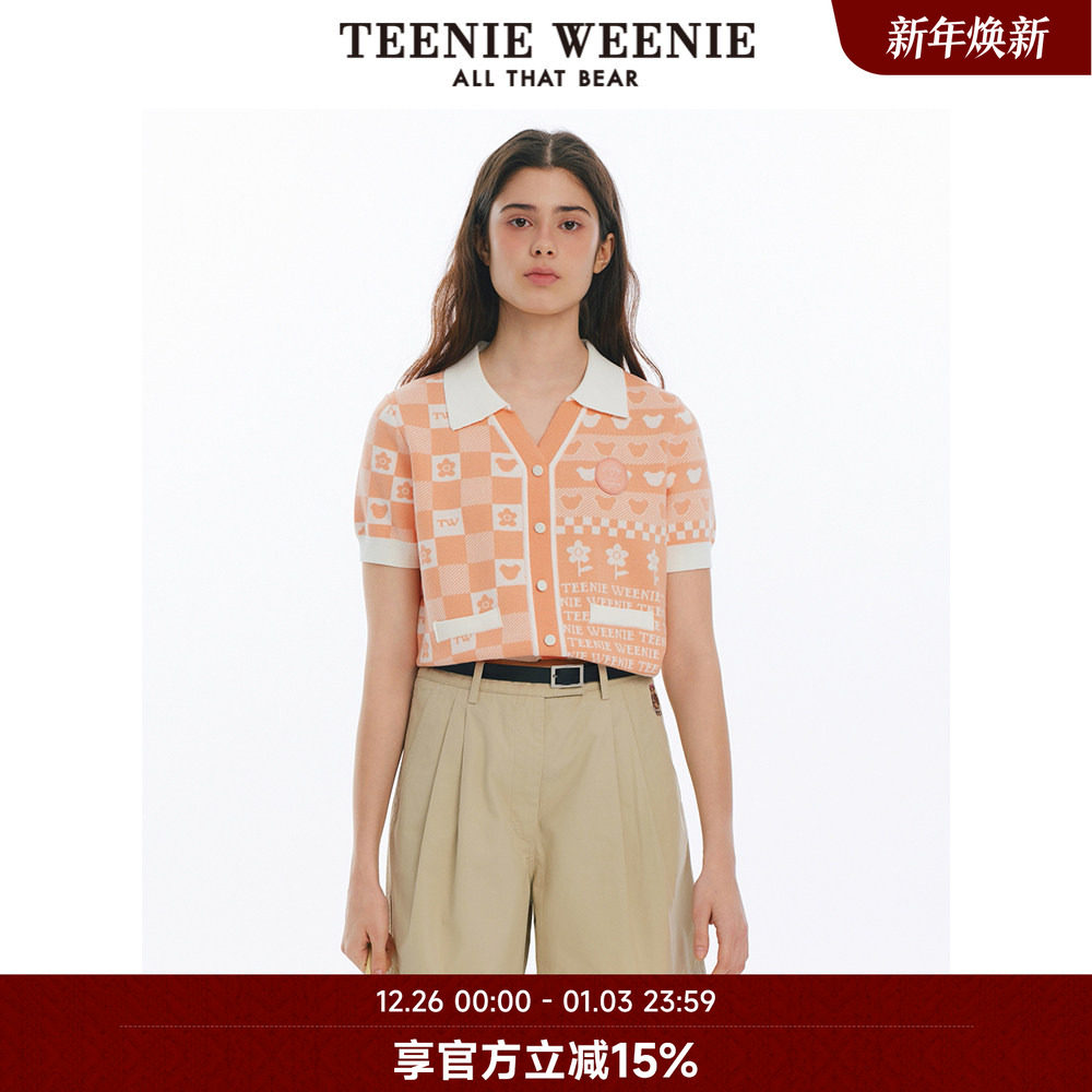 TeenieWeenie小熊奥莱针织T恤夏季新款V字翻领女装田园风短袖毛衫