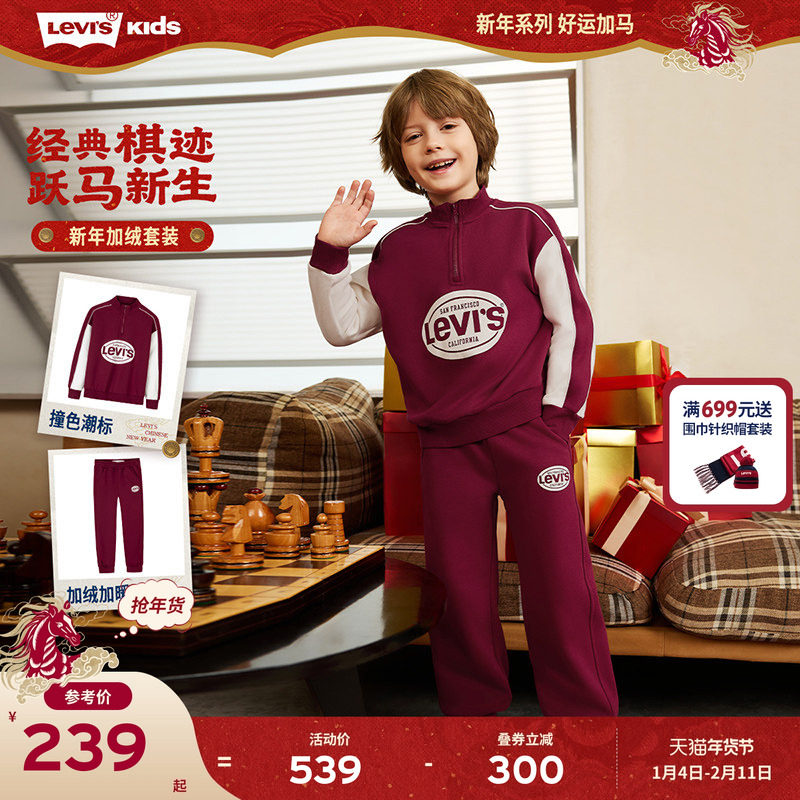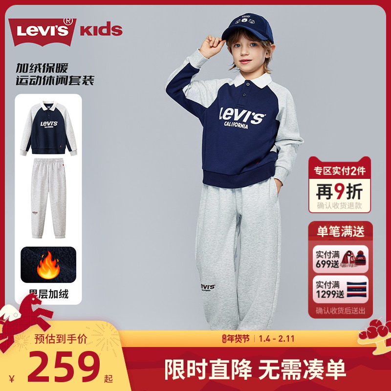 【加绒】Levis李维斯儿童运动套装童装卫衣2025冬季新款男童长袖