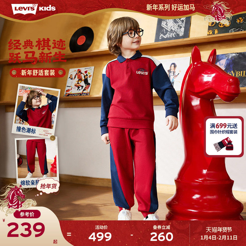 【新年马年】李维斯男童套装儿童运动红色2026春季拜年服过年衣服