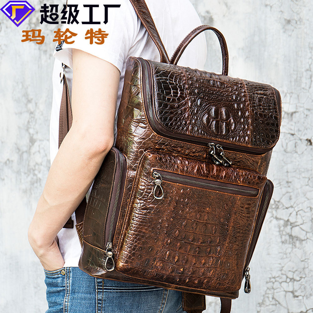 2025秋冬新款男士鳄鱼纹双肩包背包 商务头层牛皮双肩包大容量
