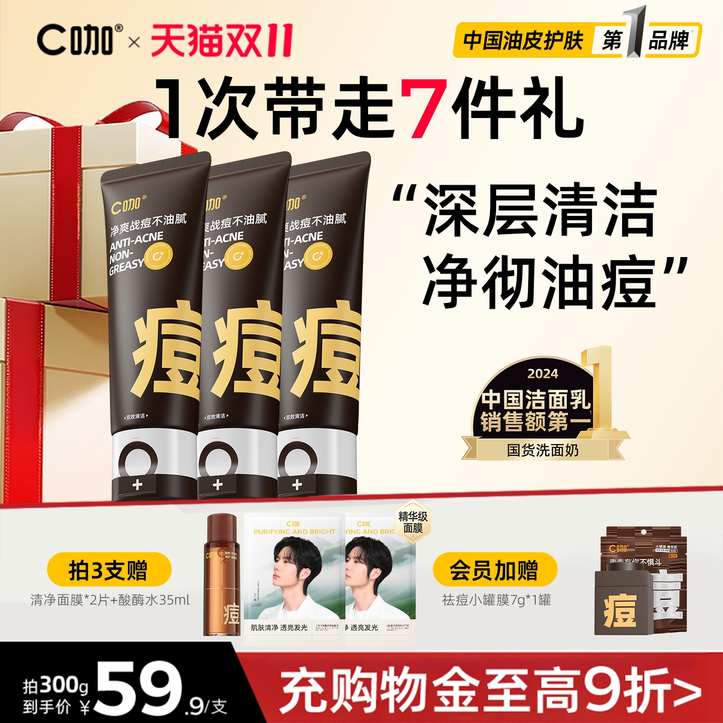 C咖洗面奶双管氨基酸洁面乳混油保湿温和清洁毛孔控油男士专用女