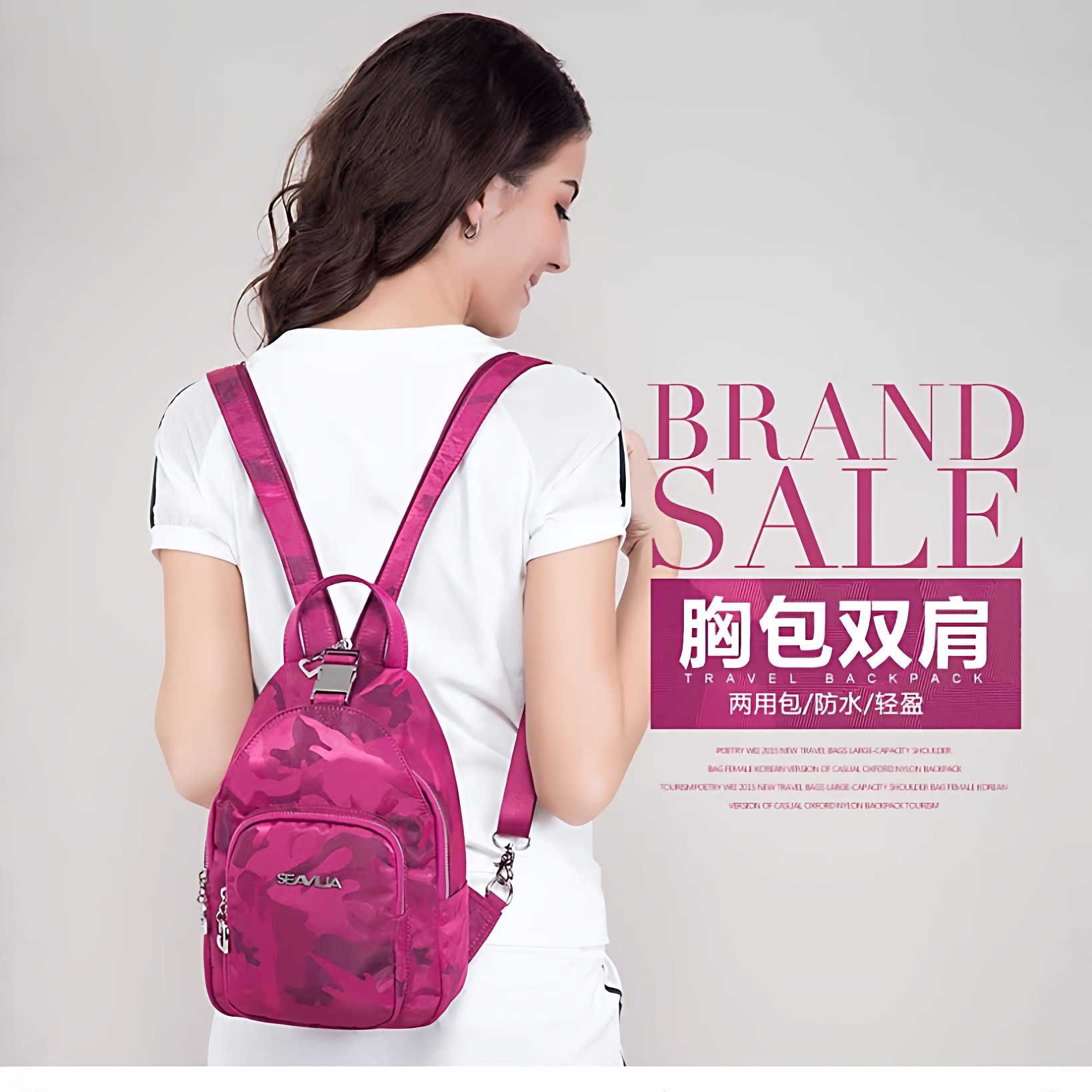 韩版女式休闲潮多功能单肩女包斜挎包户外旅行胸包大容量双肩背包