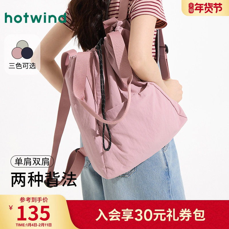 热风包包2025年春季女士两用功能尼龙单双肩包运动风户外休闲背包