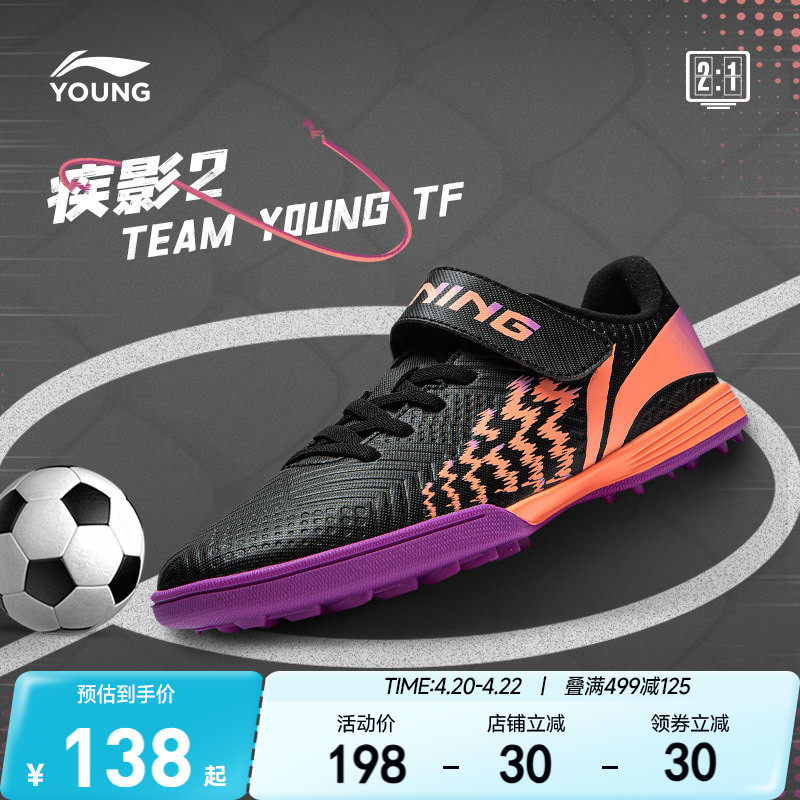 李宁儿童足球鞋男童TF碎钉小学生少儿青少年女孩专业训练专用正品