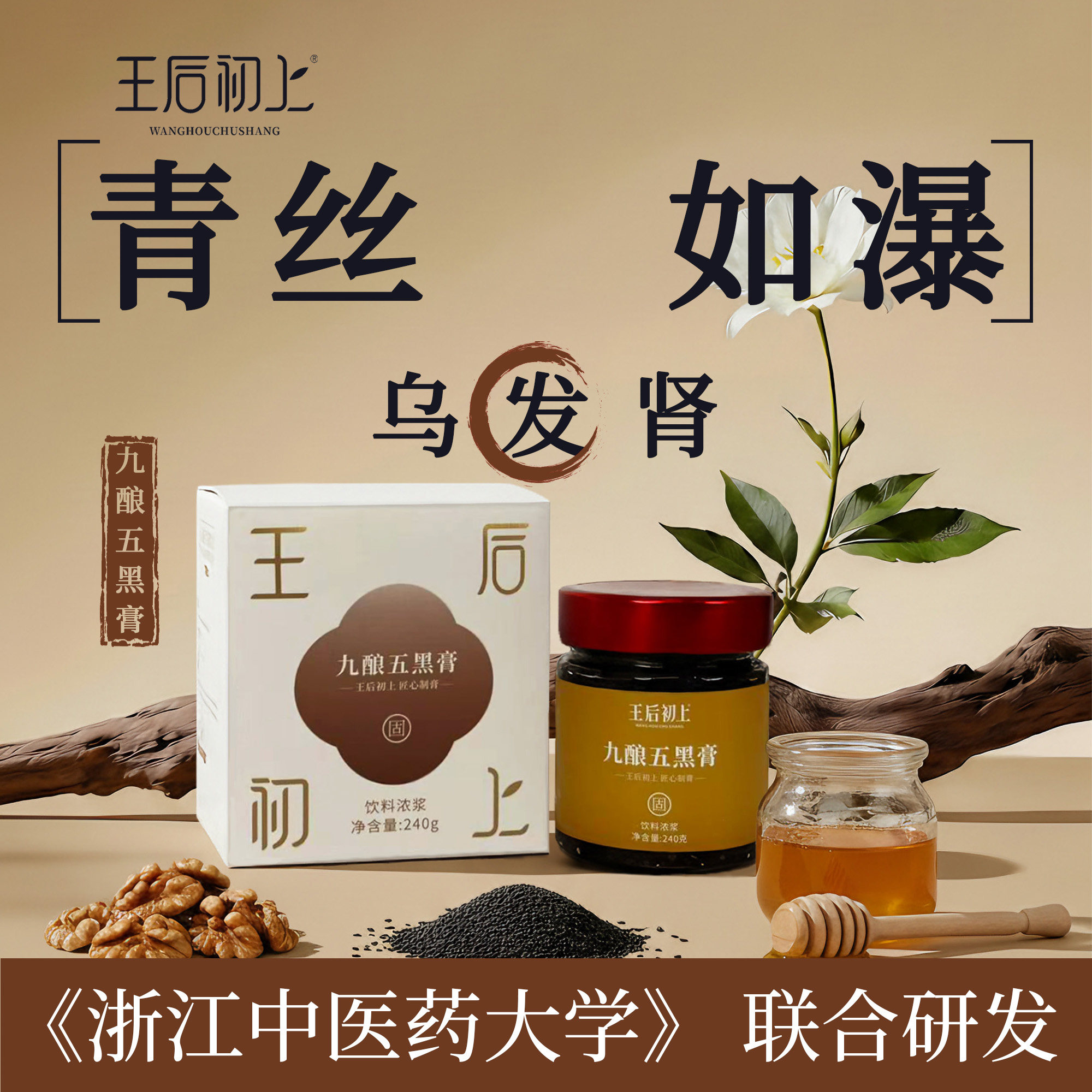 王后初上九酿五黑膏蒸制黑米黑豆黑芝麻黑枸杞发黑枣传统滋补养发