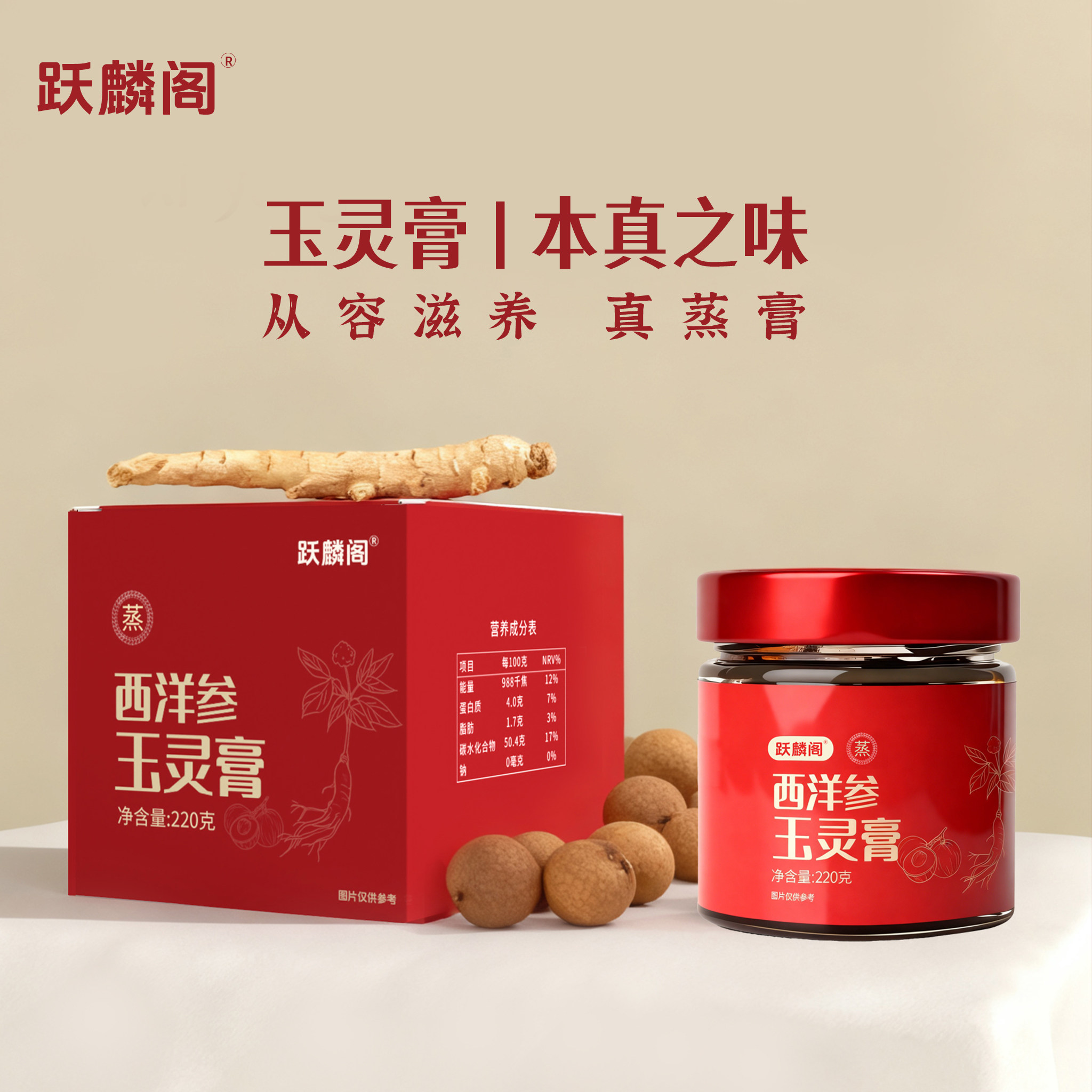 跃麟阁西洋参玉灵膏正品蒸膏龙眼肉醇厚膏体传统滋补膏滋220g瓶装