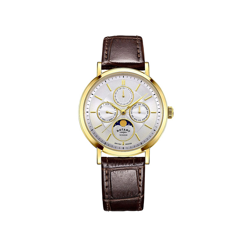 英国ROTARY劳特莱三眼男士手表商务休闲皮带石英表男友生日礼物