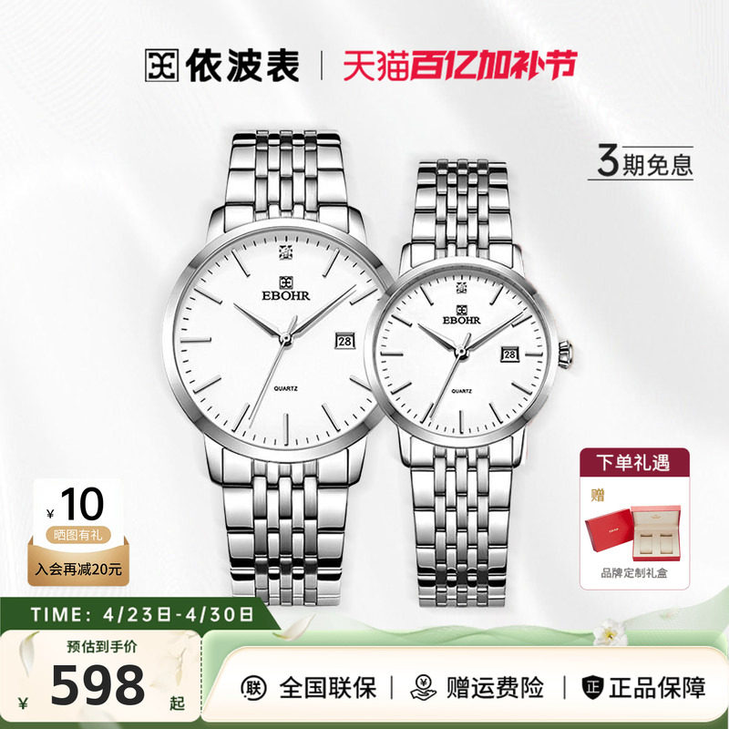 依波表EBOHR手表男士休闲学生简约不锈钢钢带情侣表石英表5029