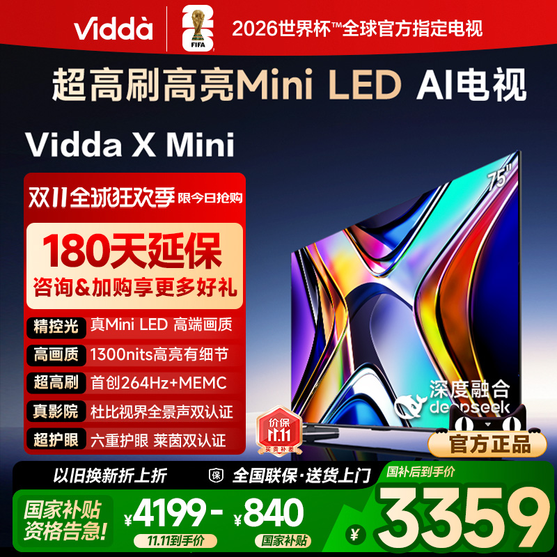 Vidda X Mini 75英寸 海信电视 Mini LED 家电补贴 75V1N-X 3891