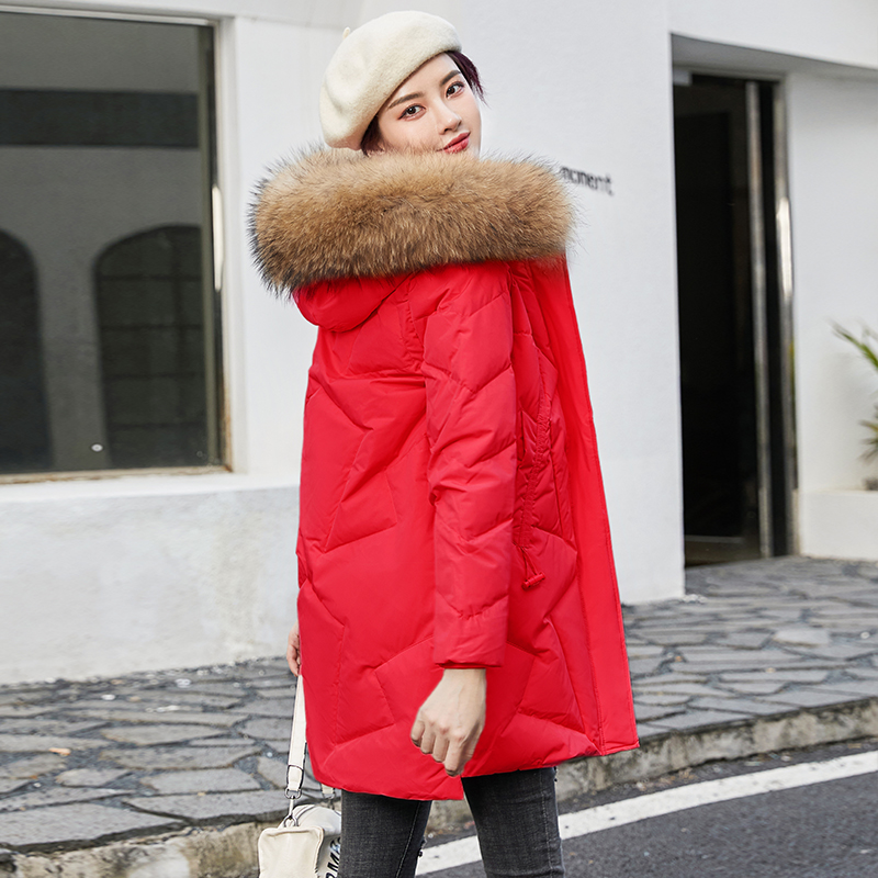 凯慕狮2023秋冬新款羽绒服女式韩版修身狐狸毛领中长款 KMS163889