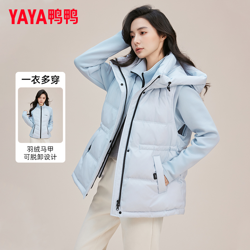 YAYA鸭鸭中长款羽绒服女2025新款两件可脱卸韩版修身保暖女士外套