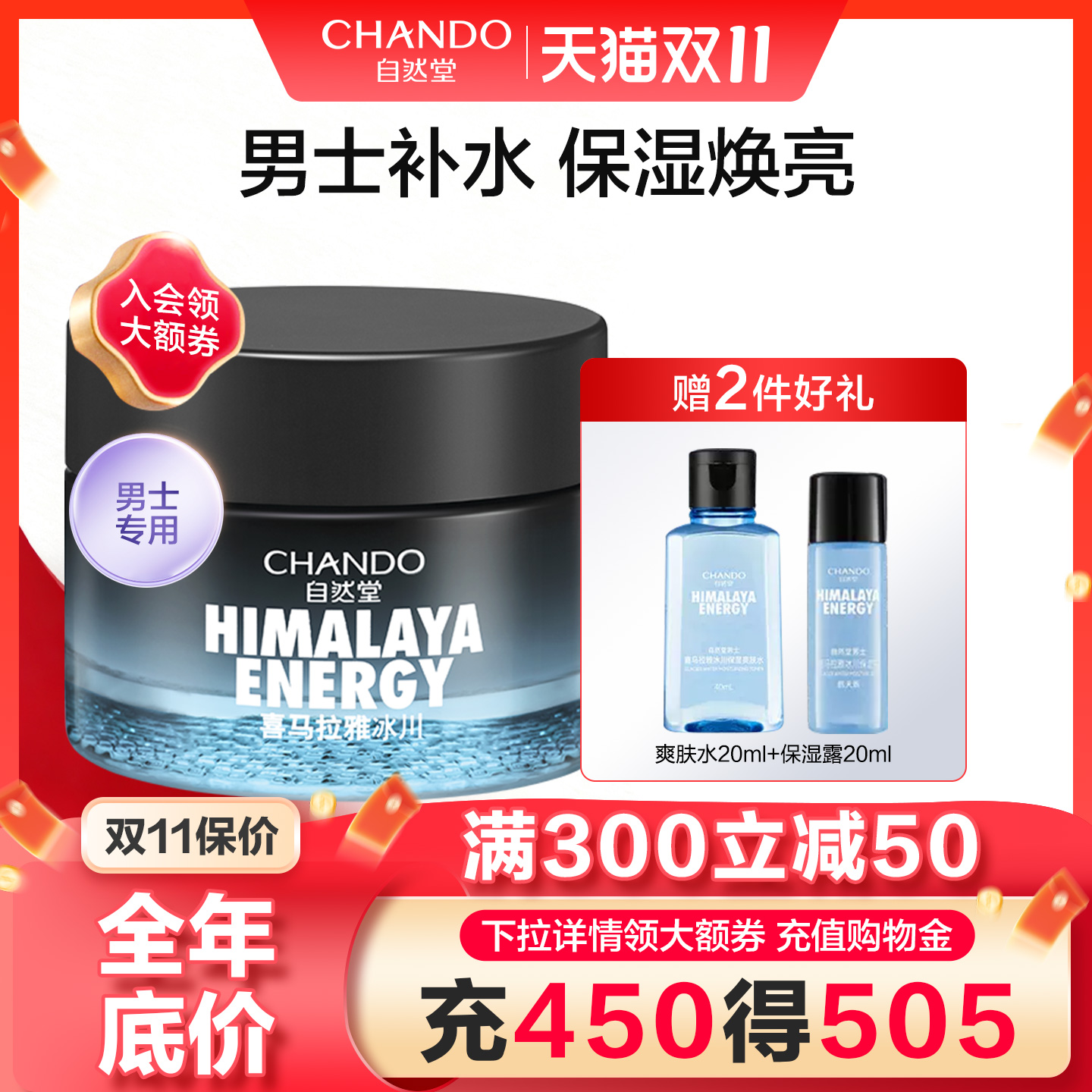 【双11抢购】自然堂男士冰川保湿露强韧修护润肤乳液面霜护肤品