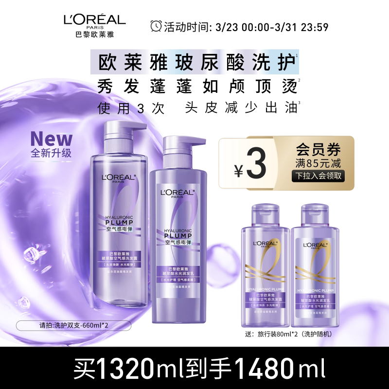【百亿补贴】欧莱雅洗发水护发素玻尿酸控油蓬松强韧活力姜大金瓶