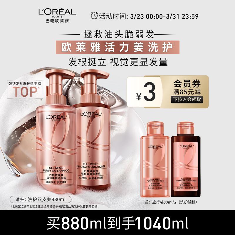 欧莱雅活力姜洗发水护发素生姜洗护套装去油强韧发丝洗头水洗发露