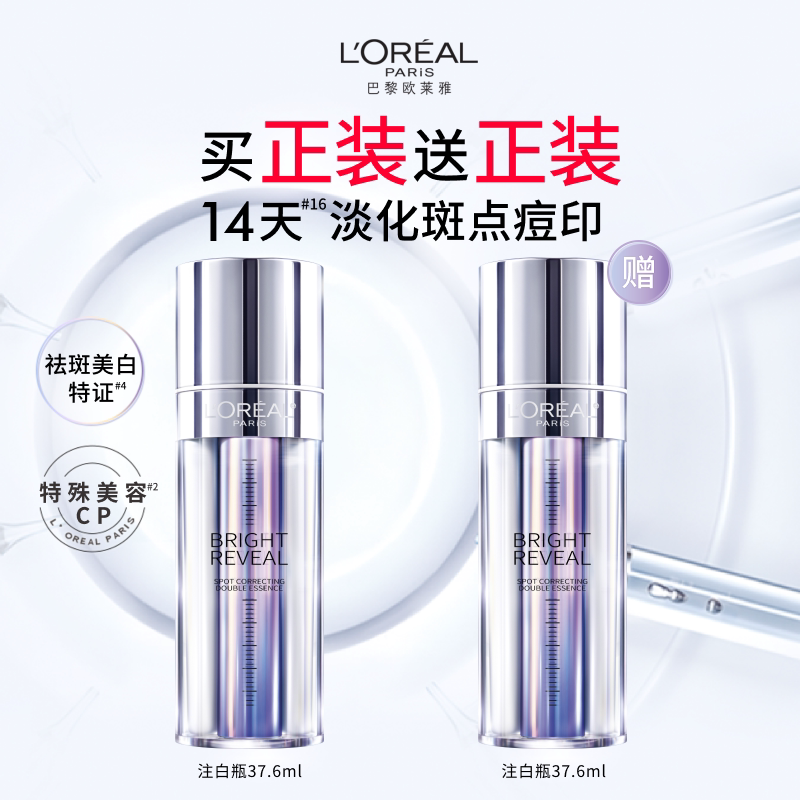 欧莱雅注白瓶美白精华淡斑提亮精华液抗氧化祛斑护肤品377烟酰胺