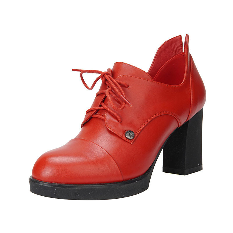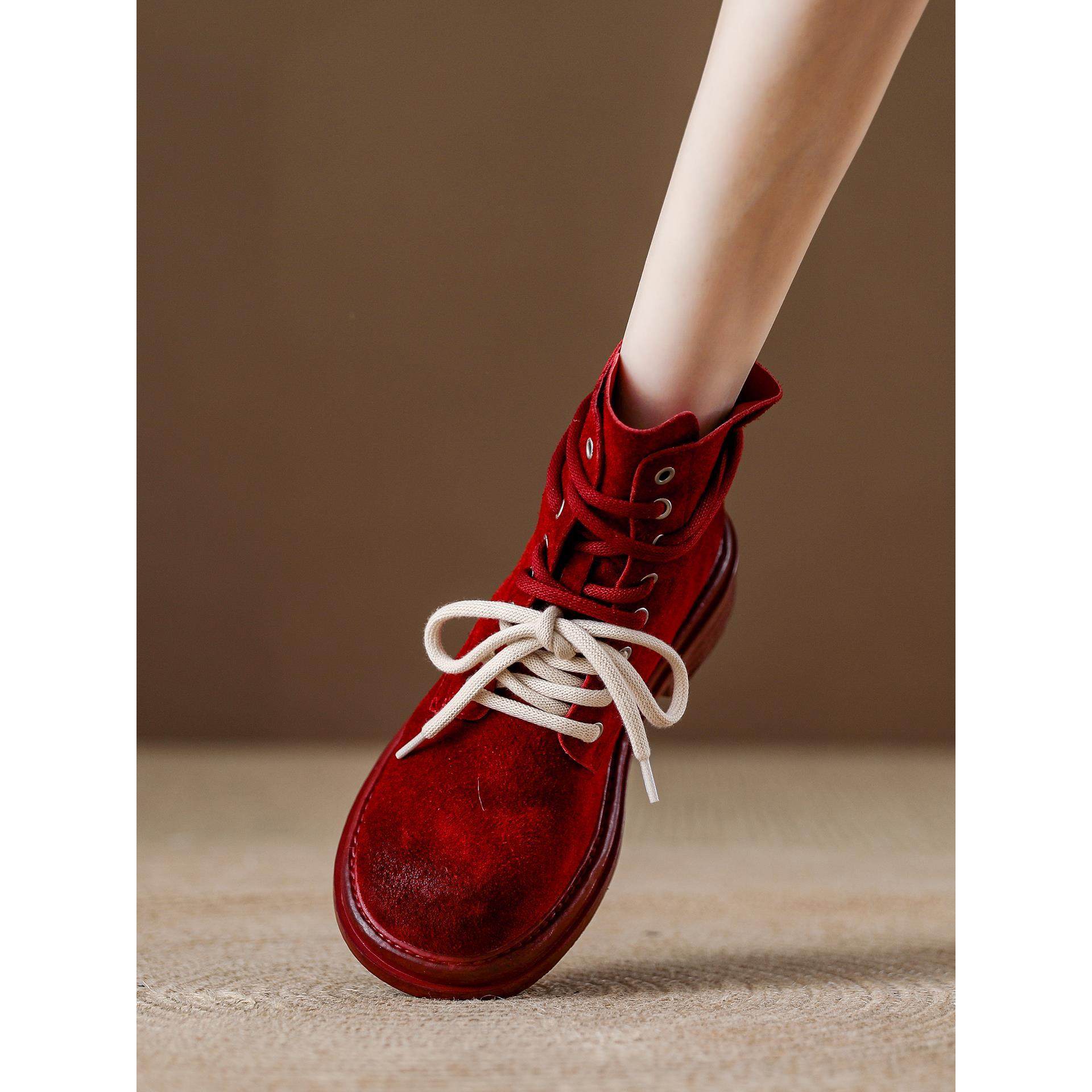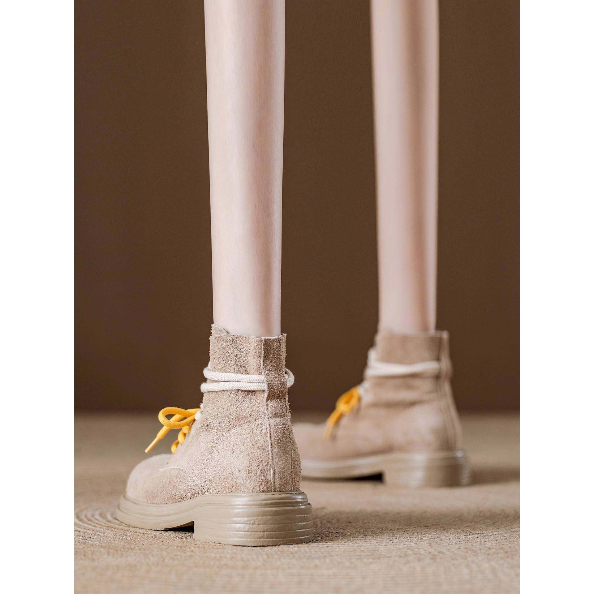 - 真皮系带马丁靴女短靴粗跟