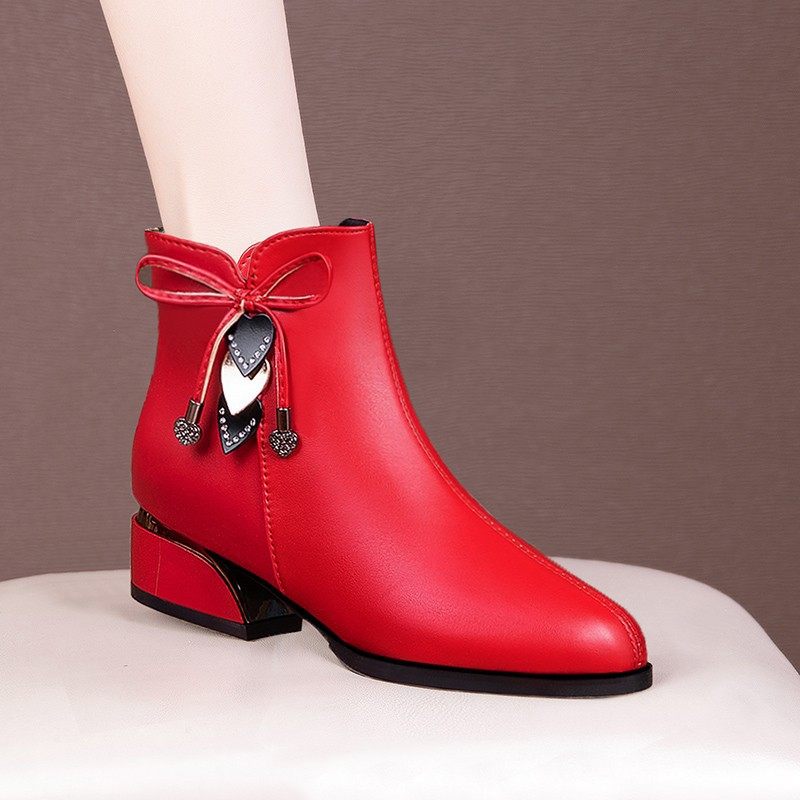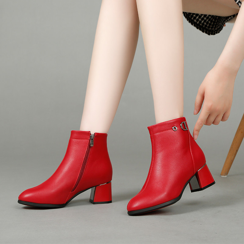 红色短靴女春秋单靴排行榜
