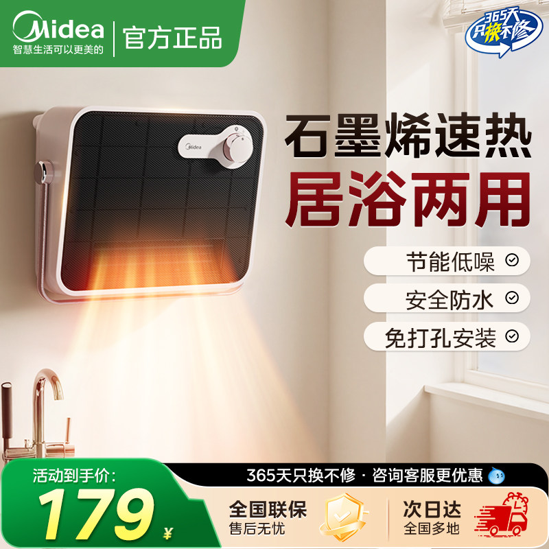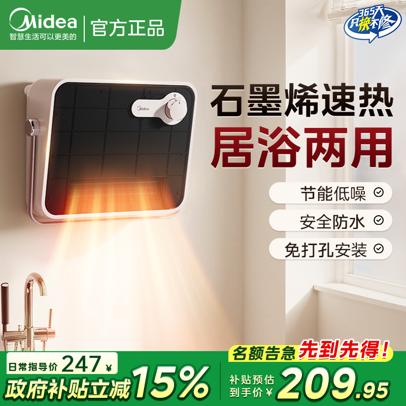 美的暖风机浴室取暖器家用石墨烯卫生间洗澡浴霸电暖器壁挂小太阳