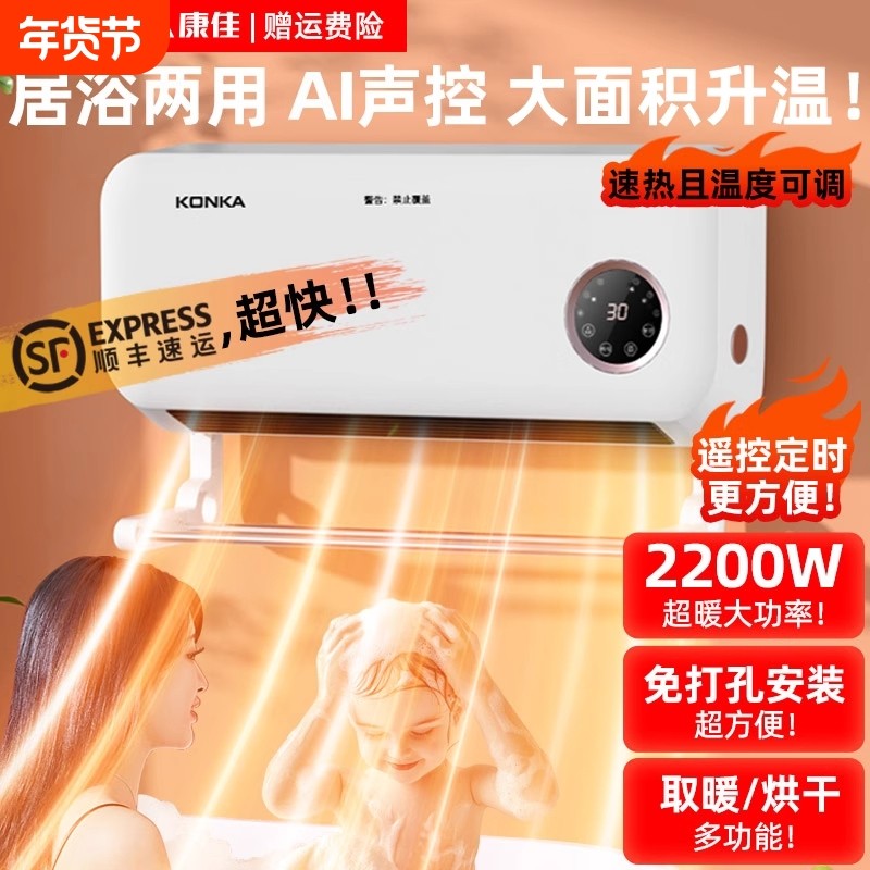 康佳壁挂式暖风机浴室取暖器家用卫生间浴霸电暖气宠物制热小空调