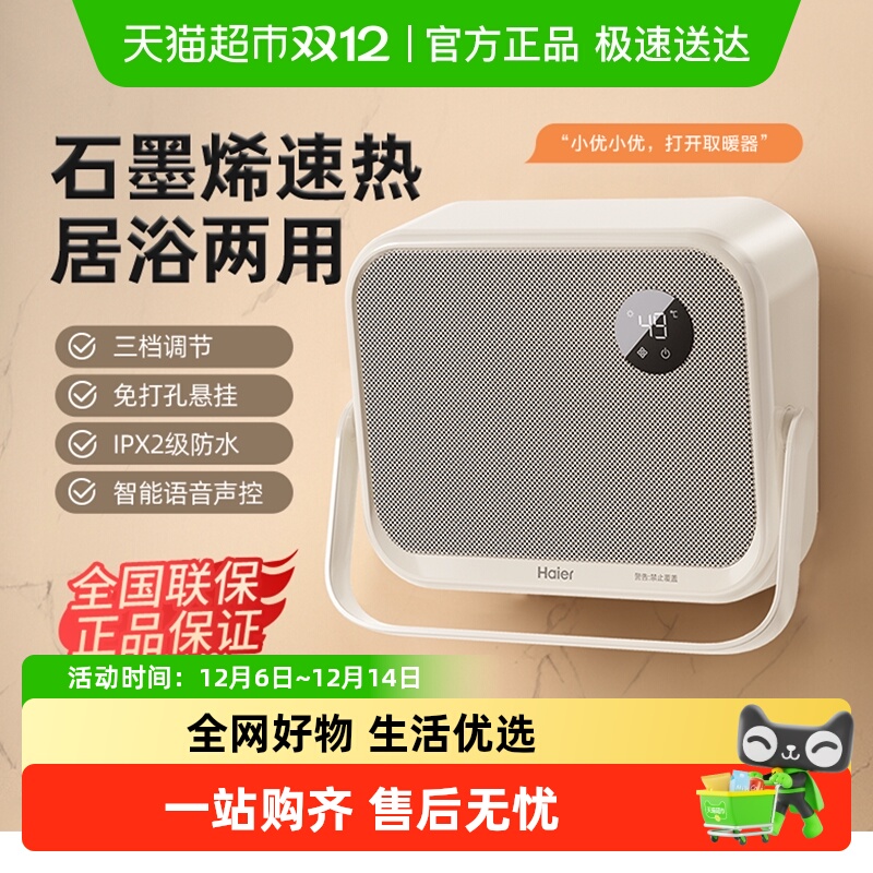 海尔石墨烯暖风机浴室取暖器卫生间壁挂式婴儿洗澡节能省电免打孔