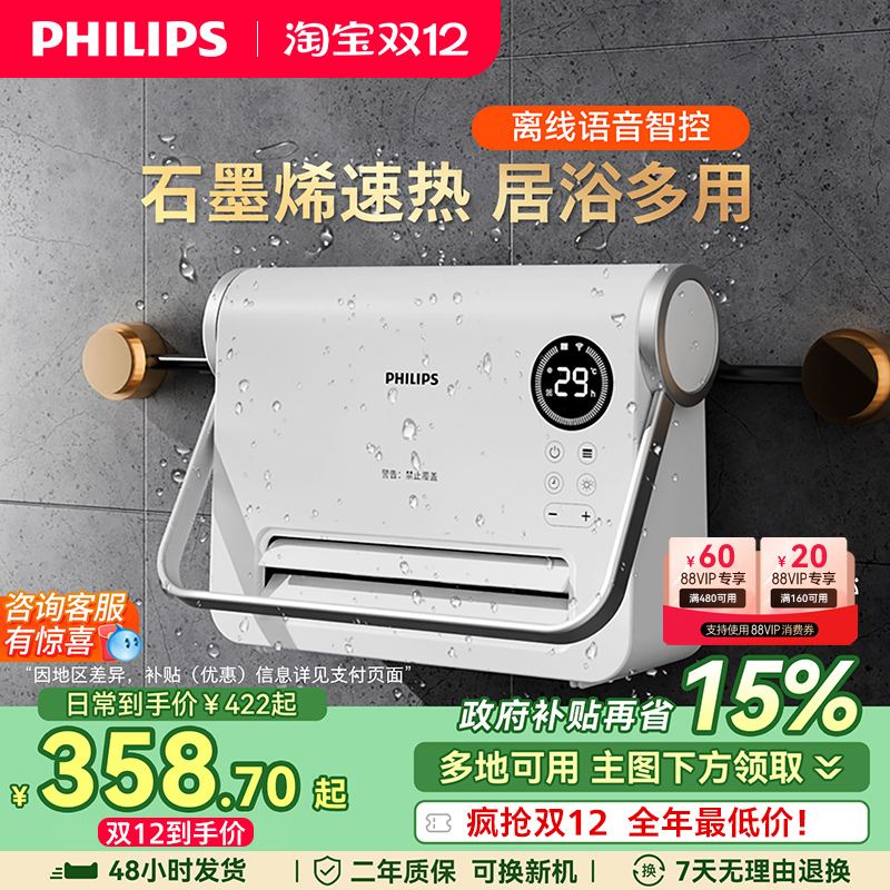 飞利浦石墨烯暖风机浴室取暖器家用壁挂防水卫生间语音电暖气速热