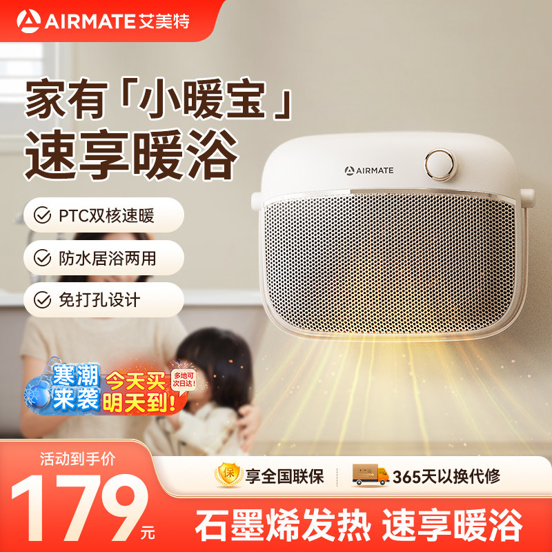 艾美特暖风机浴室取暖器家用小型壁挂婴儿洗澡卫生间HP20152-W
