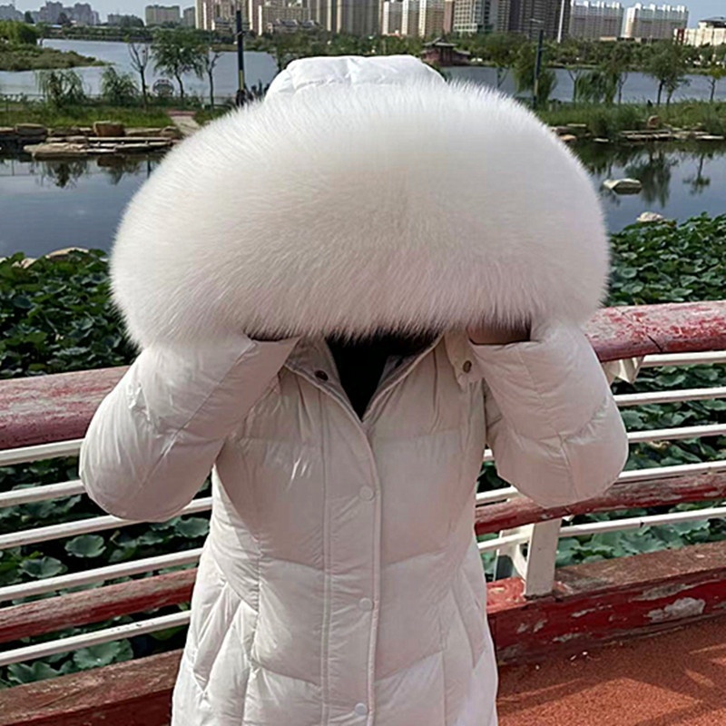 彩色貉子毛大毛领白色羽绒服女中长款个性网红过膝2023秋冬新款