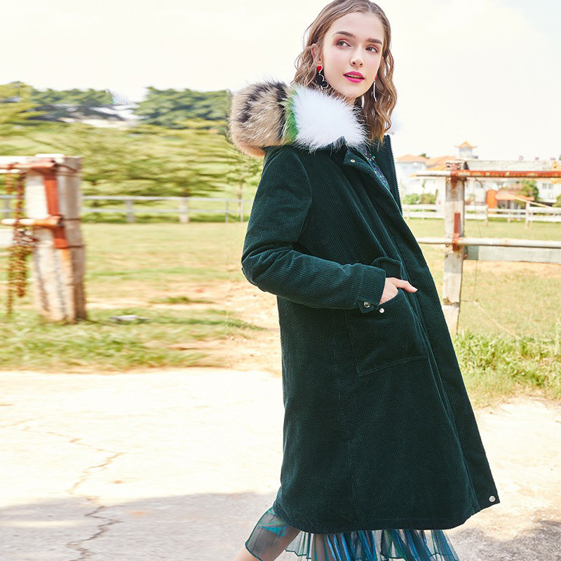 冬季羽绒服女2021新款中长款时尚韩版修身彩色大毛领连帽长过膝潮