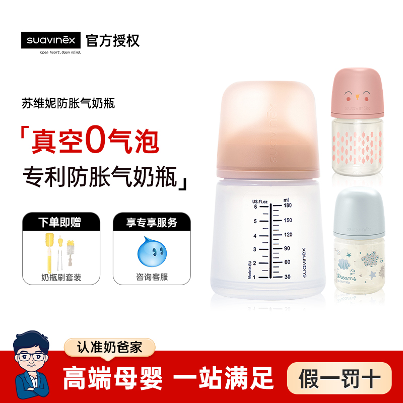 奶爸家suavinex苏维妮进口新生防胀气玻璃奶瓶奶嘴0-6个月新生儿