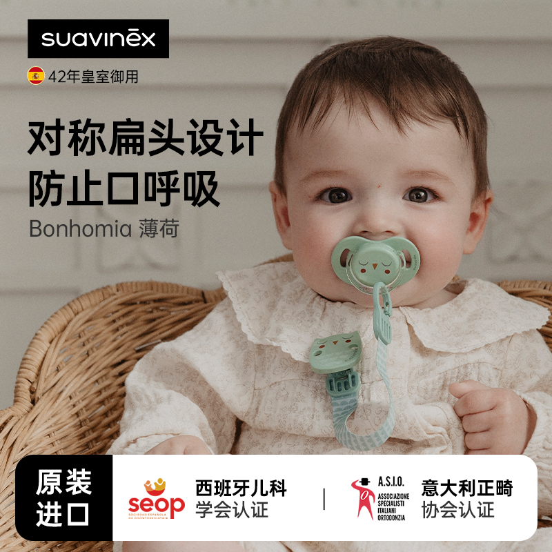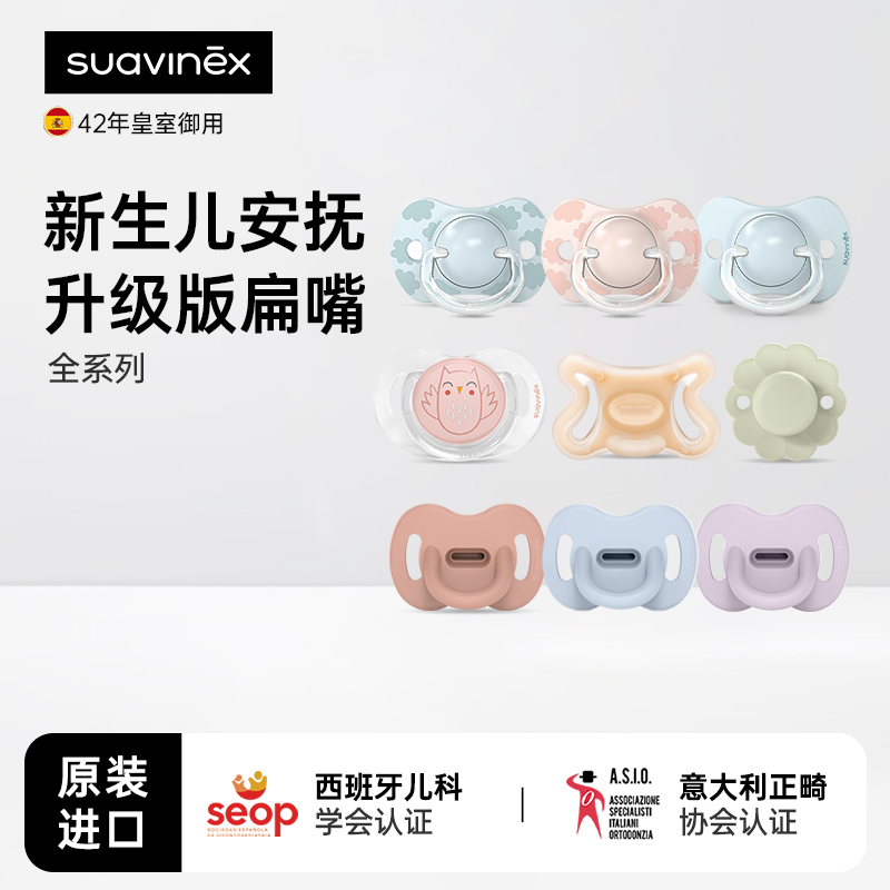 西班牙suavinex苏维妮新生儿安抚奶嘴扁头食品级硅胶防龅牙防胀气