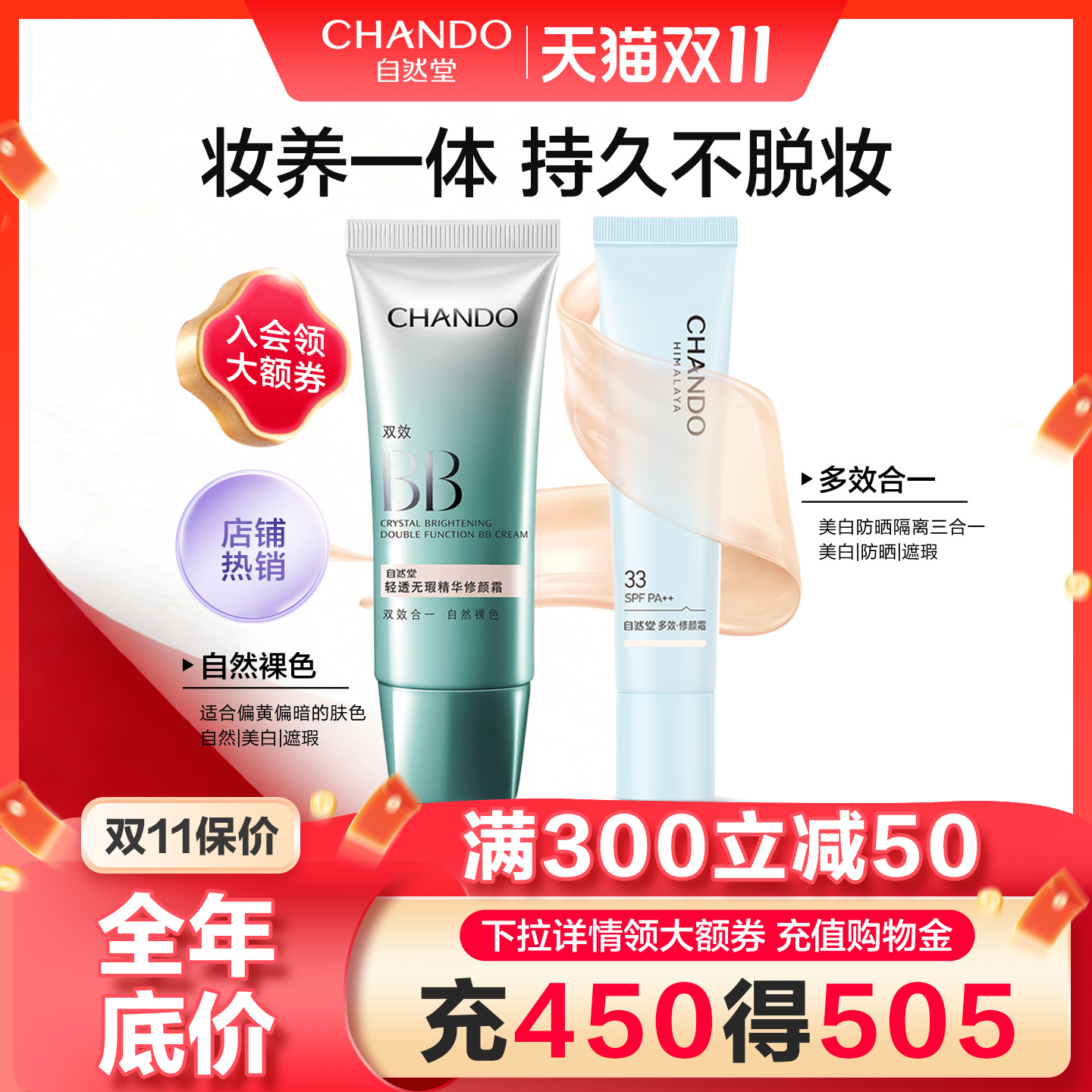 自然堂bb霜美白防晒遮瑕保湿持久不脱妆cc隔离粉底液品牌官方正品