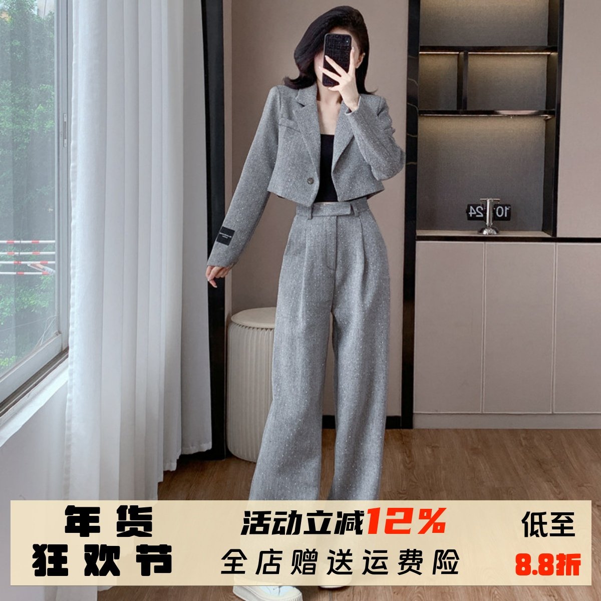 - 阔腿裤套装 两件套秋冬