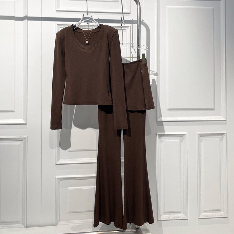 - 长袖两件套阔腿裤套装