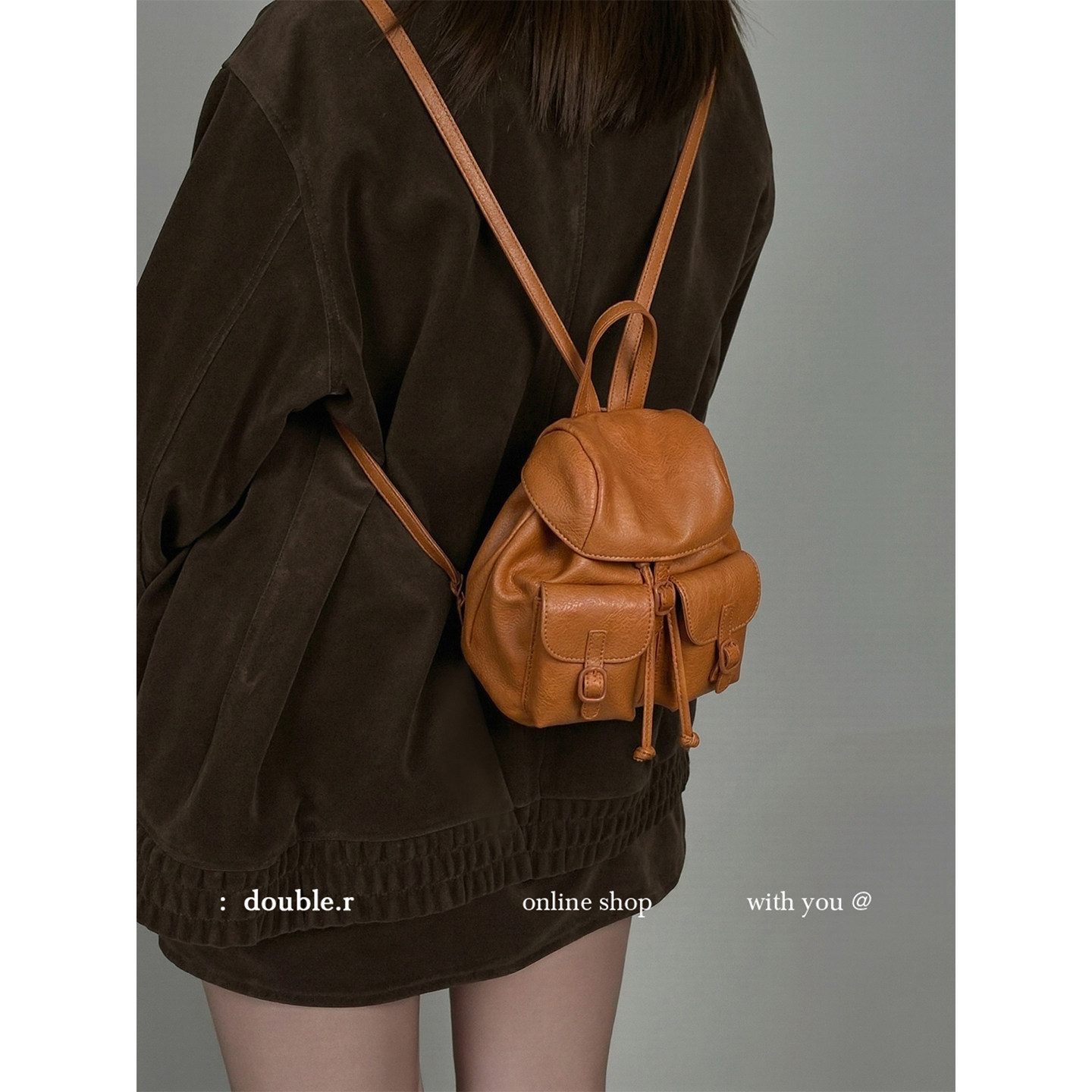 原创·小瑞靓包 橘色海 复古口袋双肩背包包女2026新款休闲小背包