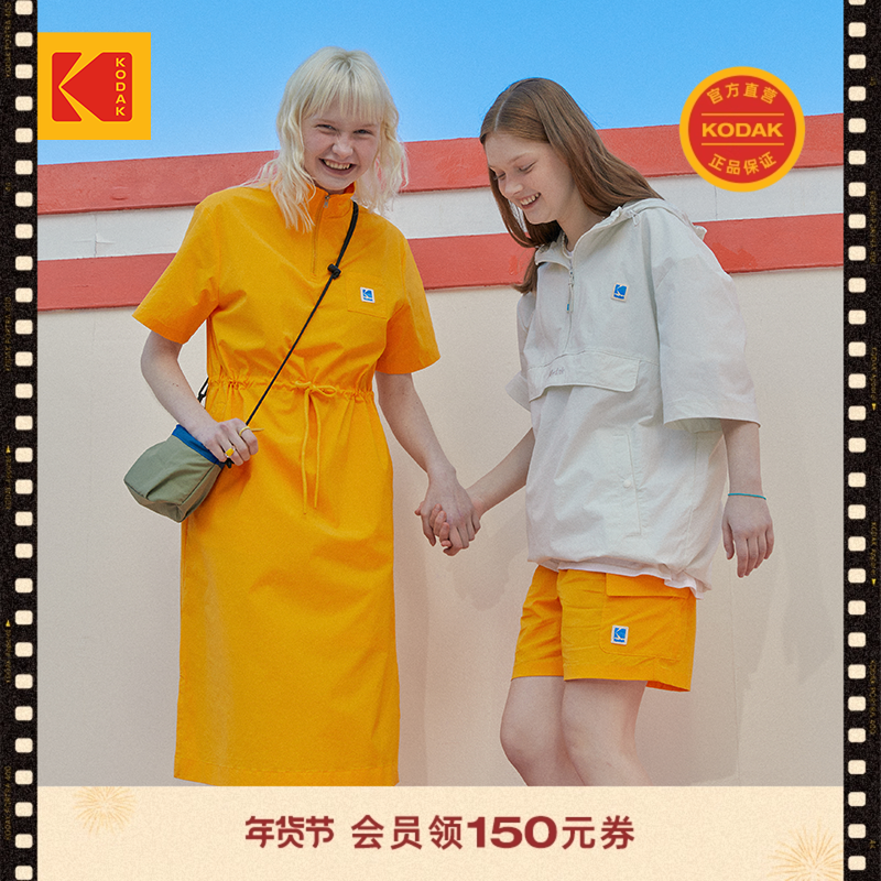 KODAK柯达春夏女式轻潮户外胸前logo印花连衣裙休闲立领连衣裙