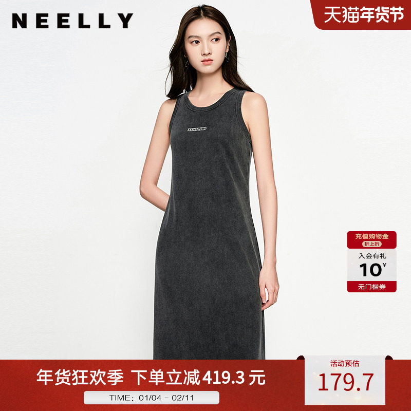 NEELLY纳俪商场同款秋冬新款休闲松弛背心连衣裙女字母印花中长裙