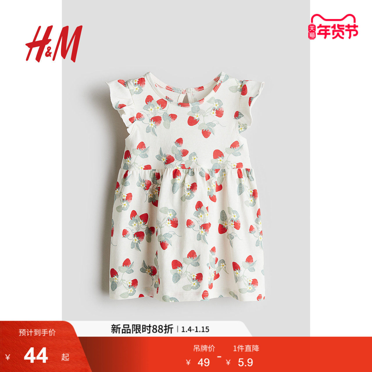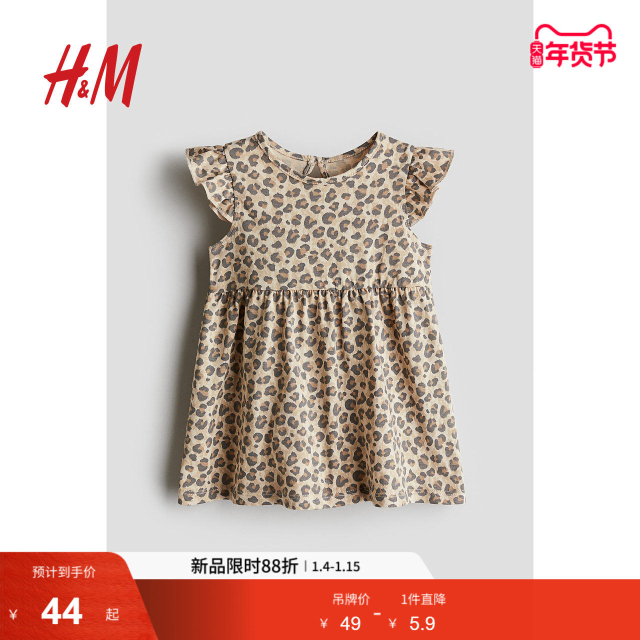 HM童装女婴连衣裙时尚休闲舒适印花圆领飞袖及膝公主裙1265912