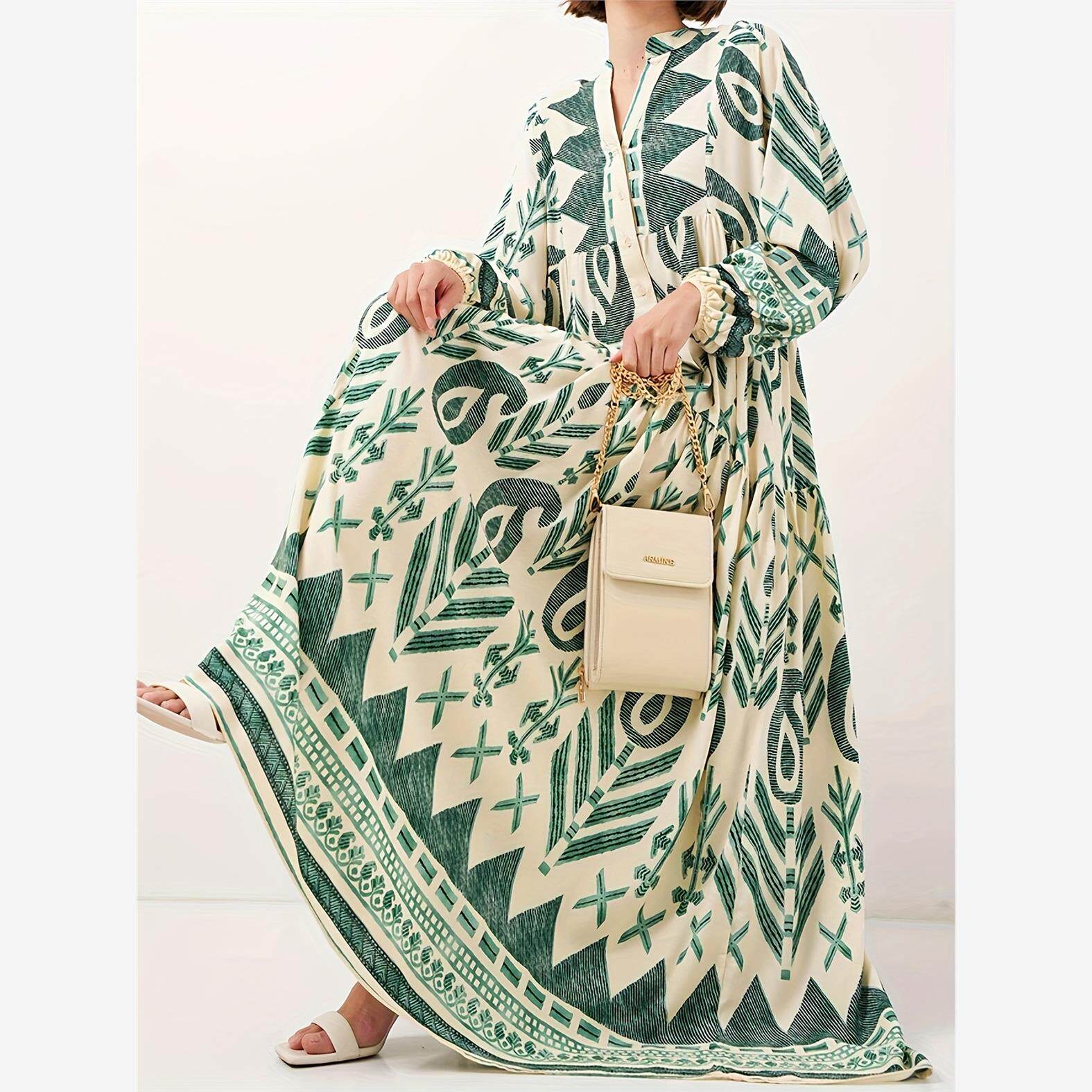 - 妈妈装印花连衣裙