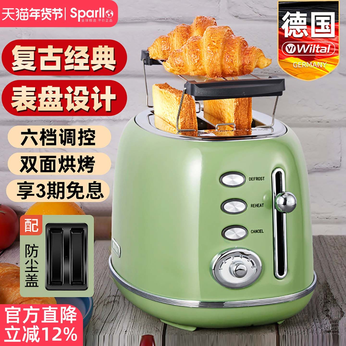 苏泊尔复古多士炉烤面包机家用全自动烤吐司机面包片三明治早餐机