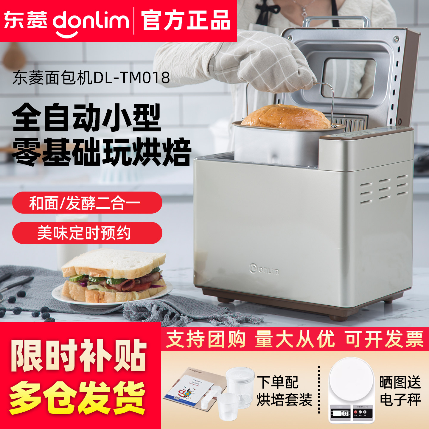 Donlim/东菱 DL-TM018东菱面包机家用全自动发酵和面多功能厨师机