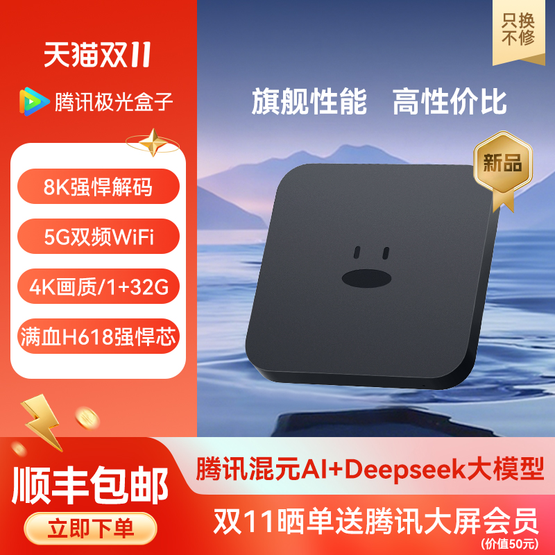 腾讯极光盒子6代-2G 8K解码智能网络电视机顶盒 千兆网口 2+32G