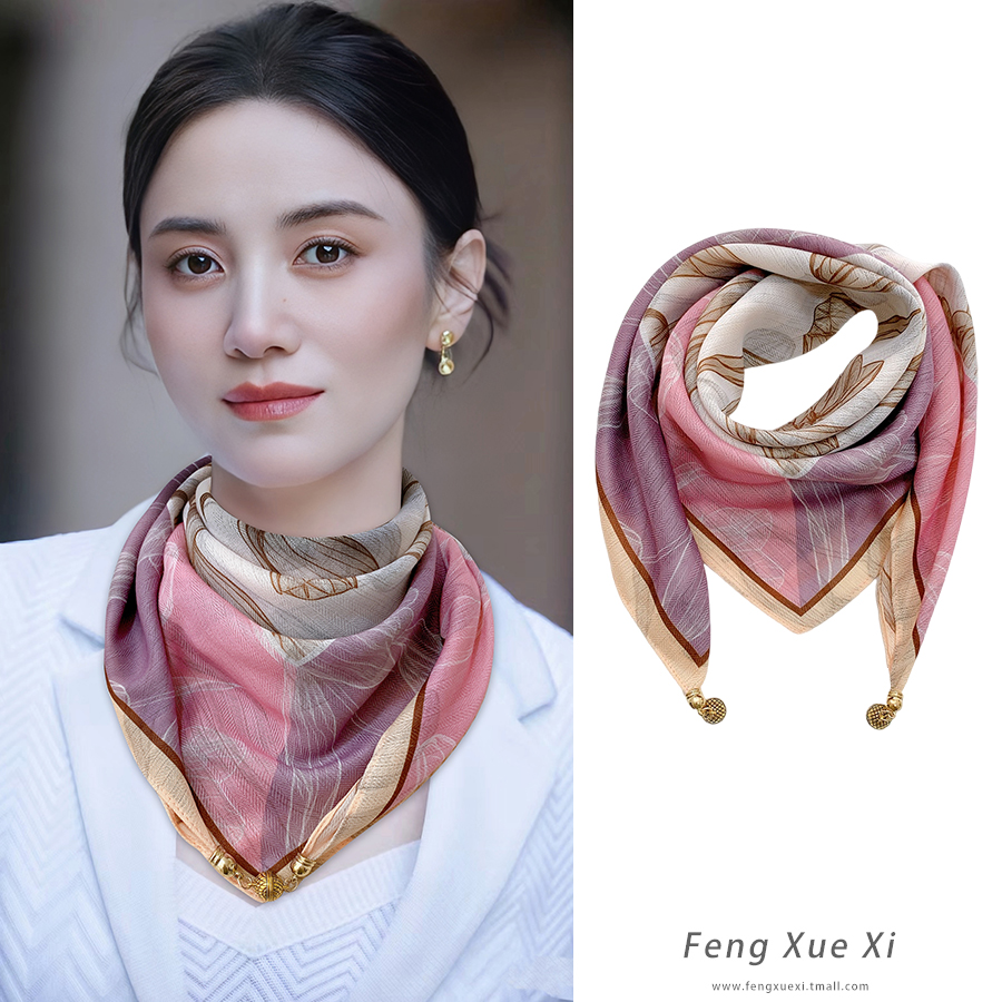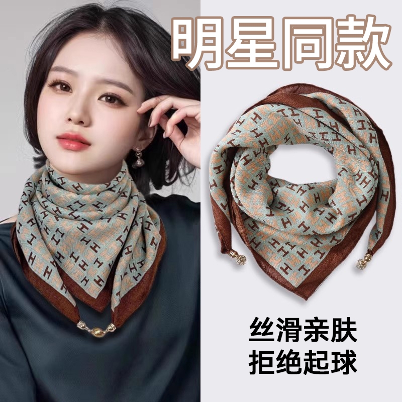 2025薄款磁吸扣丝巾女新款方巾秋冬围巾护颈围脖时尚百搭复古棉麻