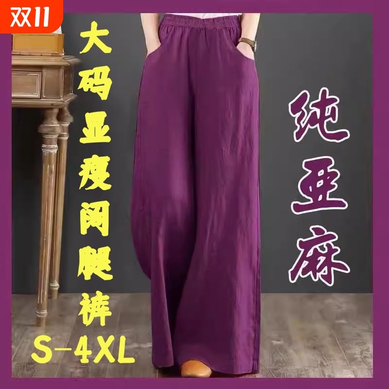 白色亚麻裤子女2025秋冬新款胖妹妹mm高腰宽松显瘦阔腿棉麻凉凉裤