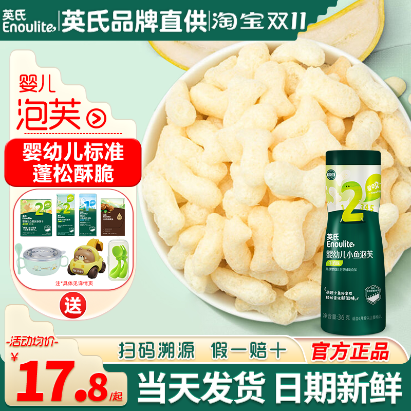 英氏小鱼泡芙无添加盐婴儿零食英式小泡芙星星手指泡芙条宝宝辅食