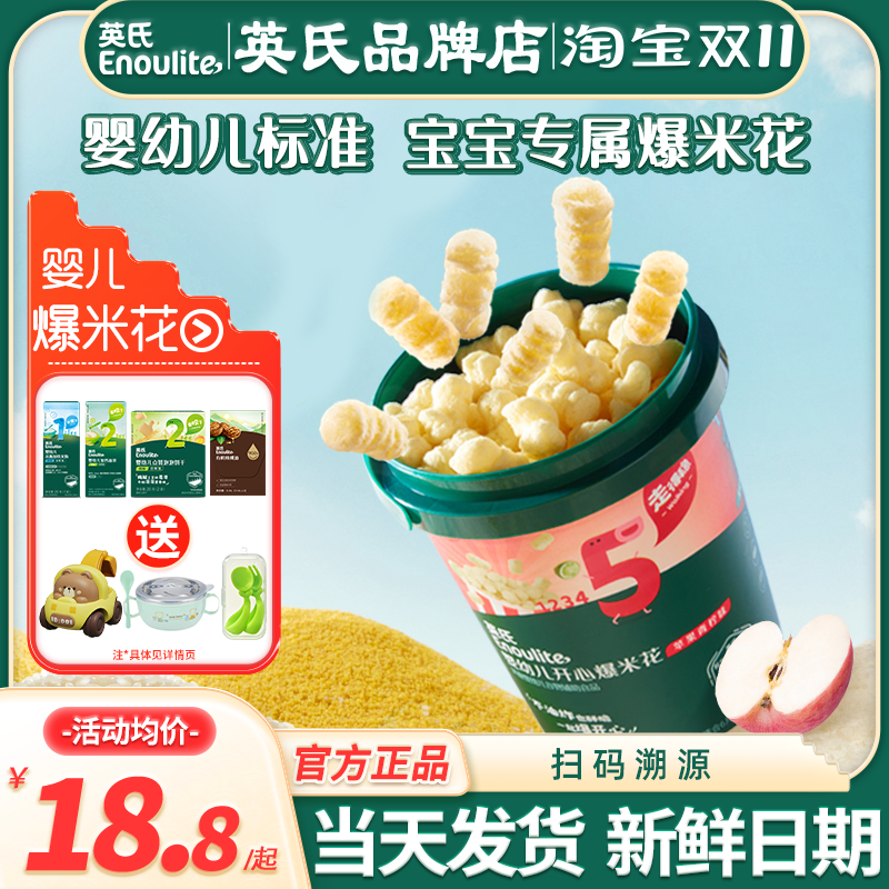 英氏爆米花婴儿零食无添加盐宝宝泡芙英式爆米花旗舰儿童休闲零食