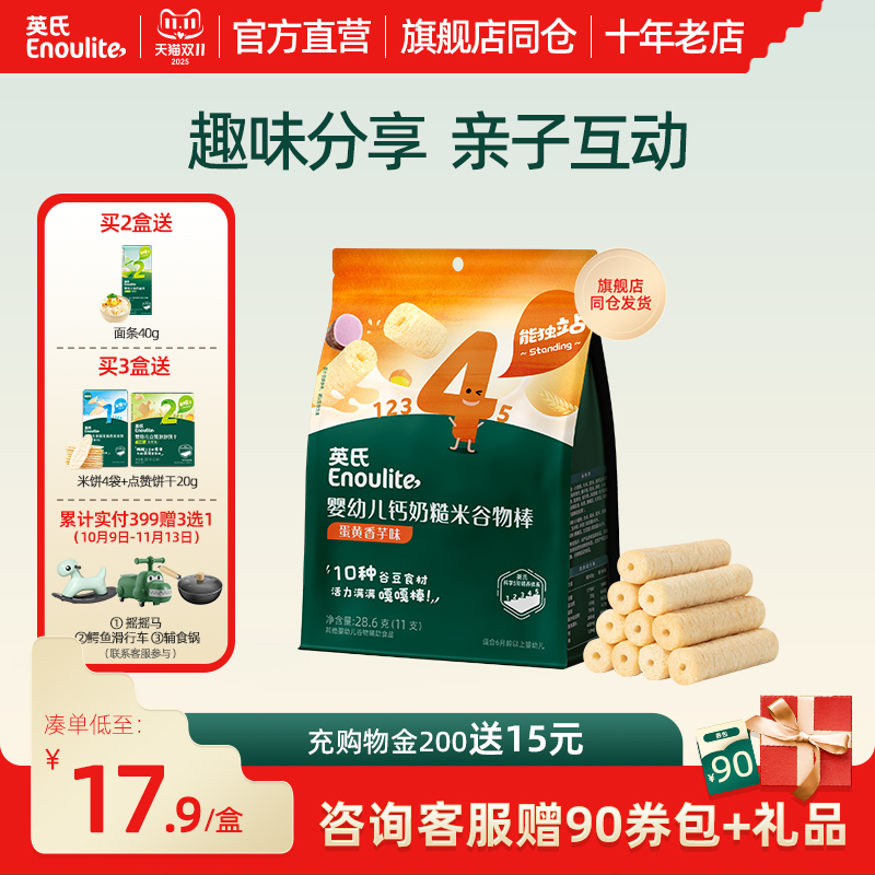 【新品】英氏婴幼儿钙奶谷物棒宝宝无添加零食饼干1岁送婴儿零食