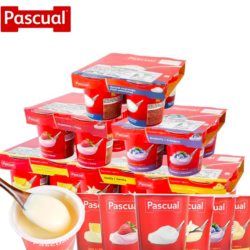 新货西班牙进口酸奶帕斯卡原味草莓香草香蕉风味酸奶120g*4杯