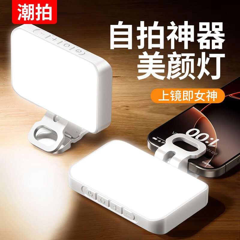 手机补光灯夹式手持三档调色五档强度摄影rgb拍摄打光灯视频抖音直播led氛围灯户外专业柔光灯口袋美颜灯
