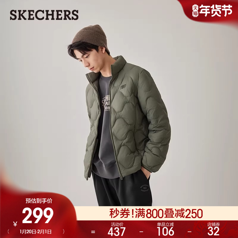 斯凯奇冬季男女同款梭织羽绒服保暖时尚外套修身百搭潮流外穿上衣