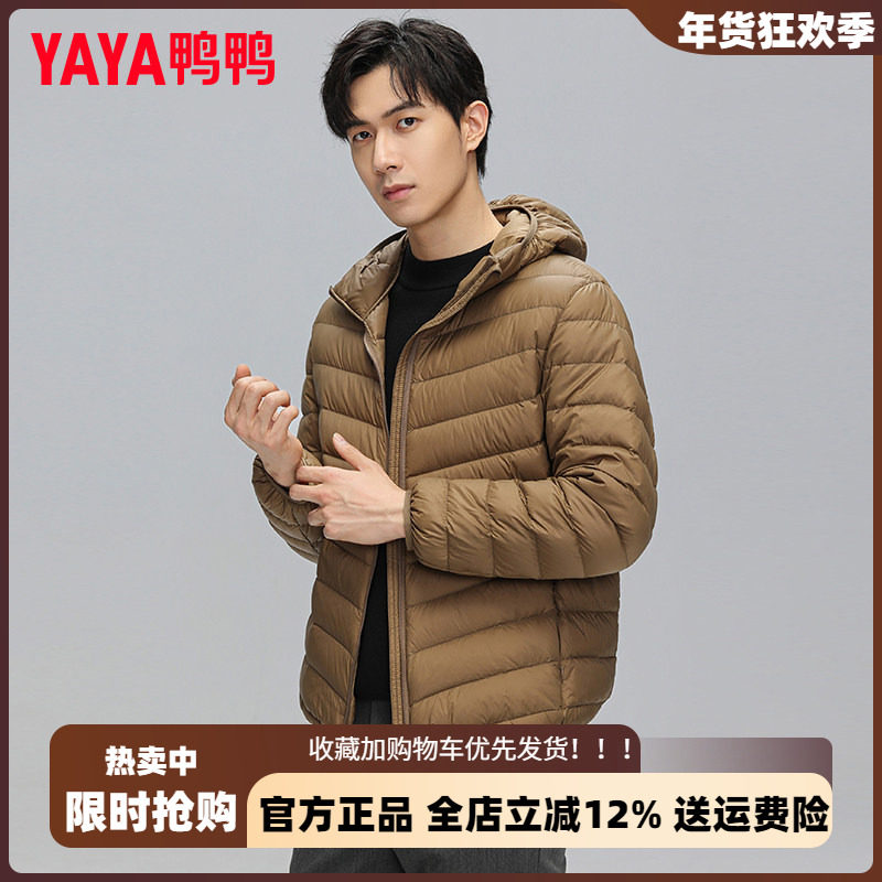 鸭鸭官方连帽羽绒服男款2025冬季新款高级感修身保暖潮流休闲外套